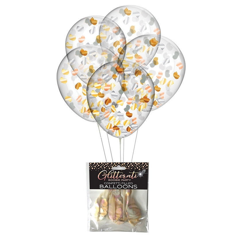 Make your celebration unforgettable with our Glitterati Boobie party line! Ideal for bachelor, bachelorette, or breast augmentation parties, these balloons feature soft, supple glitter and metallic breasts. Each package includes five 11-inch confetti-filled balloons for a sparkling and playful touch.